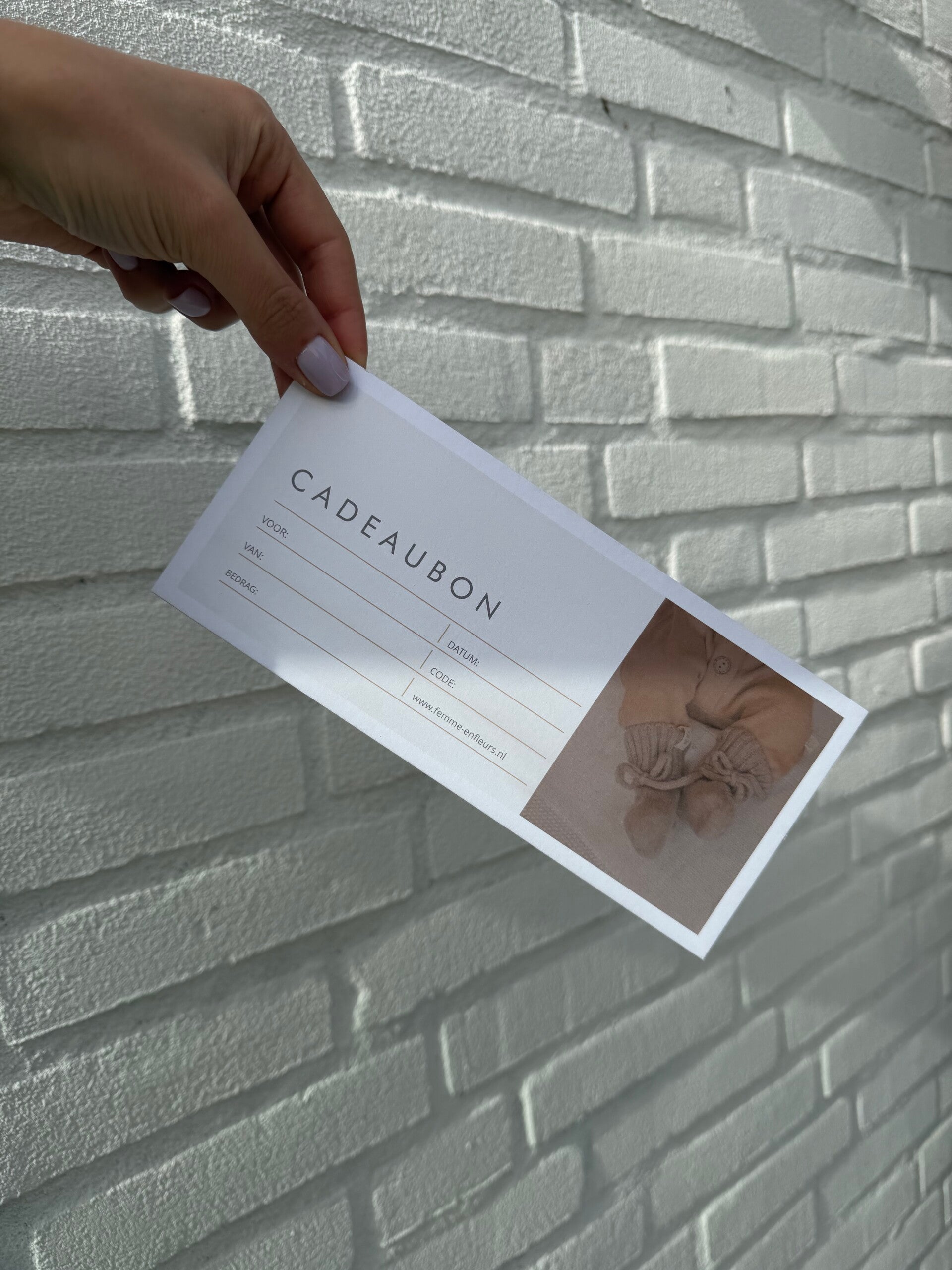 Zoek jij nog een leuk cadeau om te geven, maar weet je niet precies welke maat of kleur je moet kiezen? Dan kun je ook iemand blij maken met onze cadeaubon. Je kunt zelf het gewenste bedrag kiezen. Geef in de opmerking bij het bestellen aan, wie de cadeaubon van jou ontvangt. Dan maken wij het extra persoonlijk voor je.