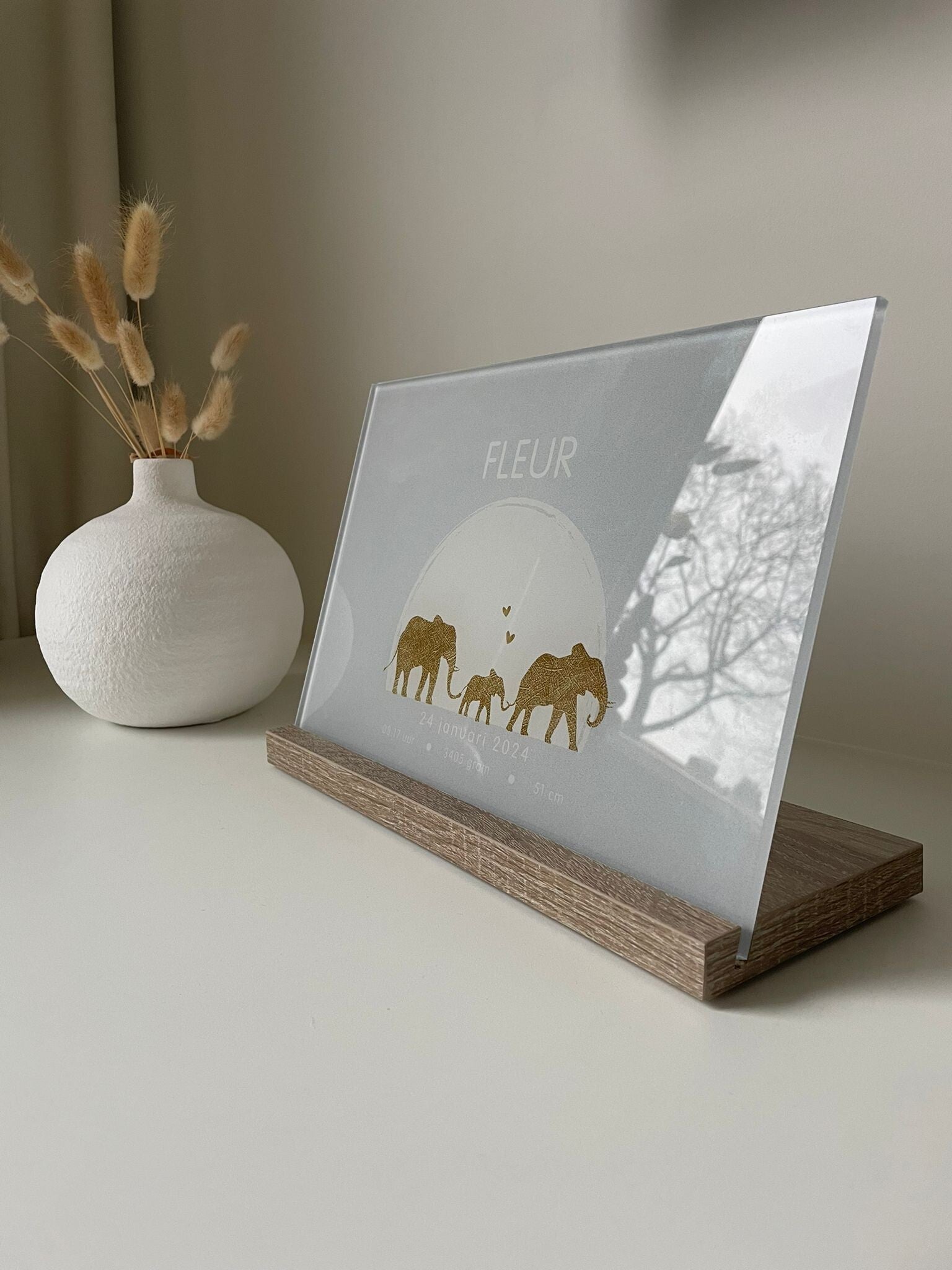 Wilt u een blijvende herinnering toevoegen van uw kleintje? Kies dan voor een unieke glasplaat bij Femme en Fleurs.