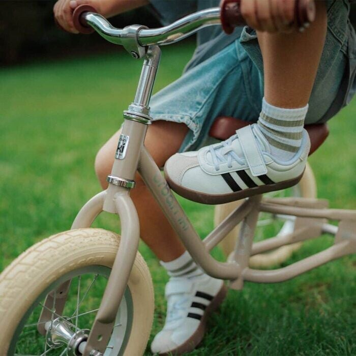 Voor iedere beginnende fietser is het fijn om samen met jou te oefenen in huis of in de tuin. De bandjes laten geen strepen achter en zijn fluisterstil. Daarom kan je kleintje prima de eerste meters binnenshuis afleggen. Dat is wel zo veilig! Is het tijd om naar buiten te gaan? Dan stuur je gemakkelijk mee over de schouder van je kleintje.