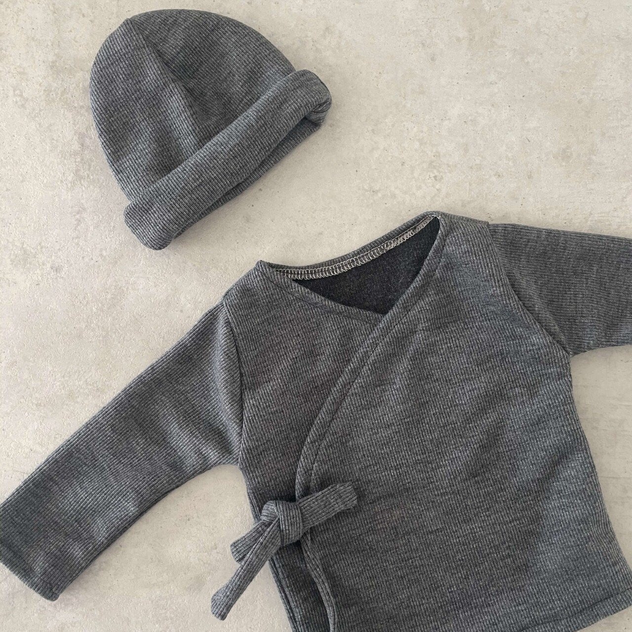 Een super zacht vestje, flared broekje en mutsje wat heerlijk zit voor je kleintje, gemaakt van een fijne ribstof. Leuk als set met het bijpassende broekje en het new born mutsje.